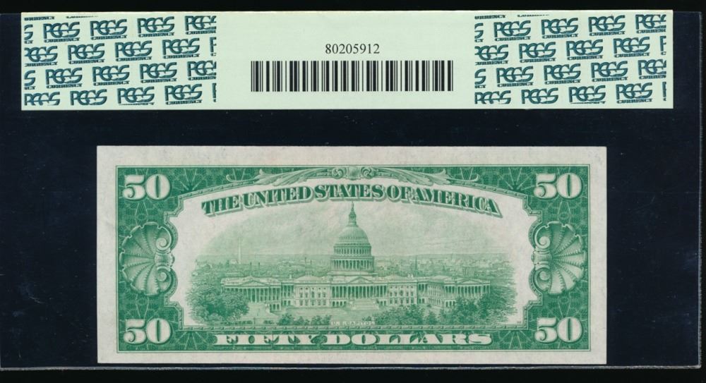 One 1934 $50 Boston Federal Reserve Note PCGS 64PPQ.