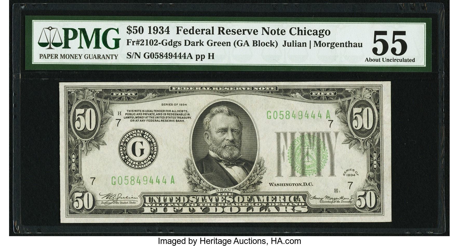 One 1934 $50 Chicago Federal Reserve Note PMG 55.