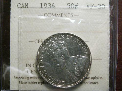 1934 50¢ ICCS VF30, lightly toned. A popular date.