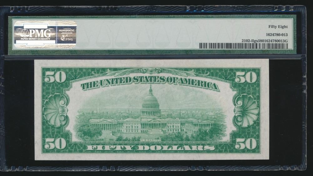 One 1934 $50 Minneapolis Federal Reserve Note PMG 58.