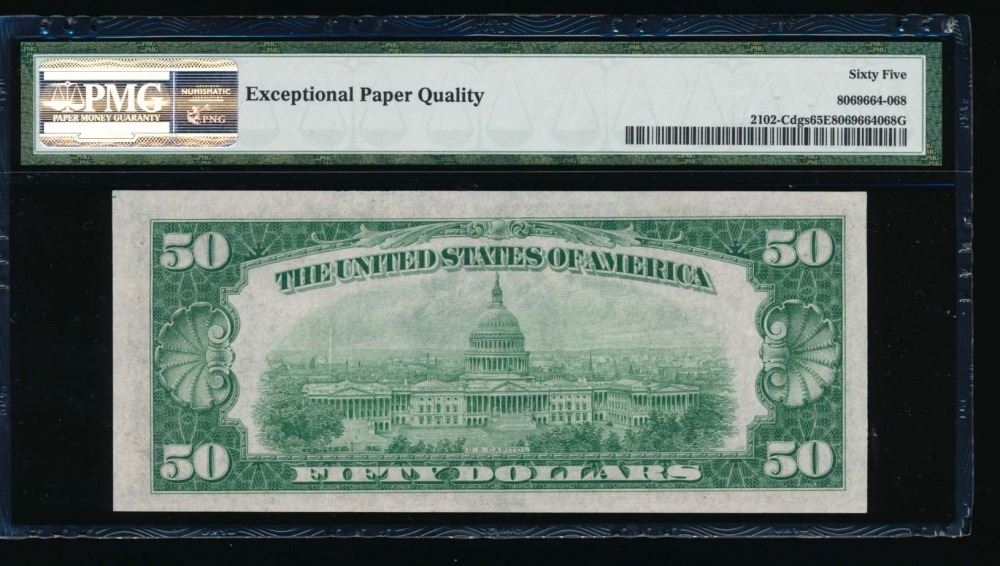 One 1934 $50 Philadelphia Federal Reserve Note PMG 65EPQ.