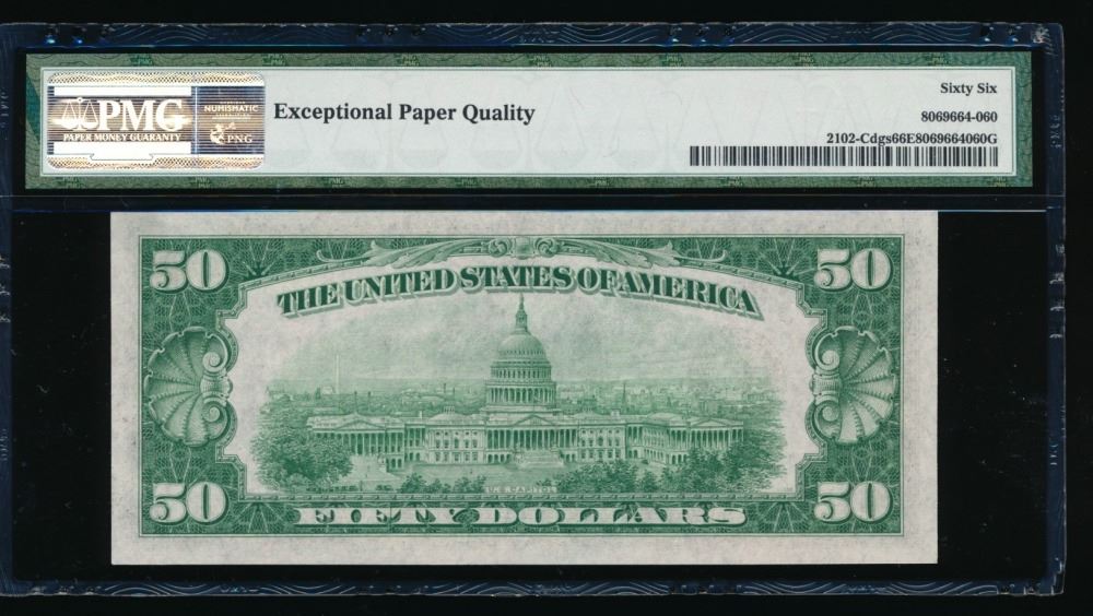 One 1934 $50 Philadelphia Federal Reserve Note PMG 66EPQ.