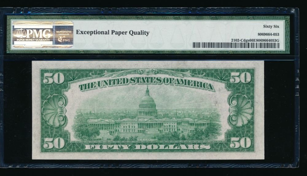 One 1934 $50 Philadelphia Federal Reserve Note PMG 66EPQ.