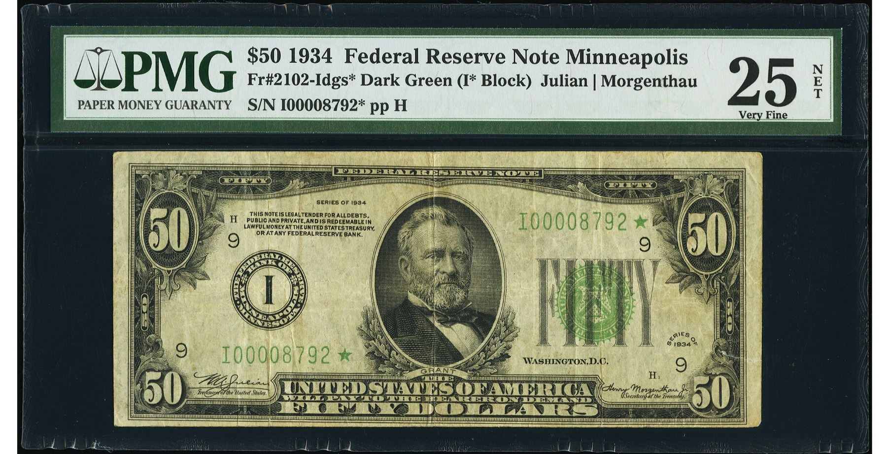 One 1934 $50 STAR Minneapolis FRN PMG 25NET.