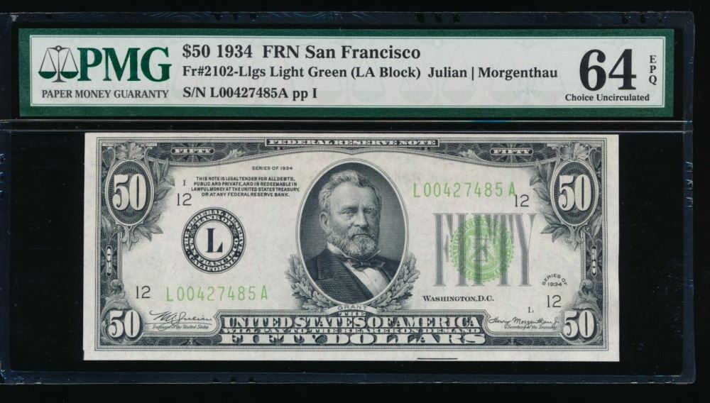 One 1934 $50 San Francisco Federal Reserve Note PMG 64EPQ.