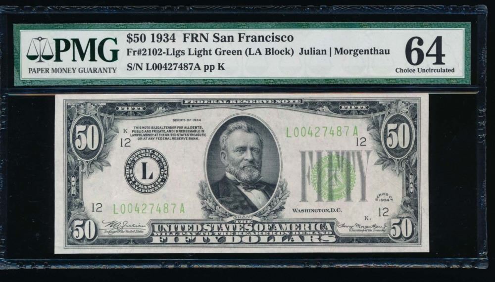 One 1934 $50 San Francisco Federal Reserve Note PMG 64.