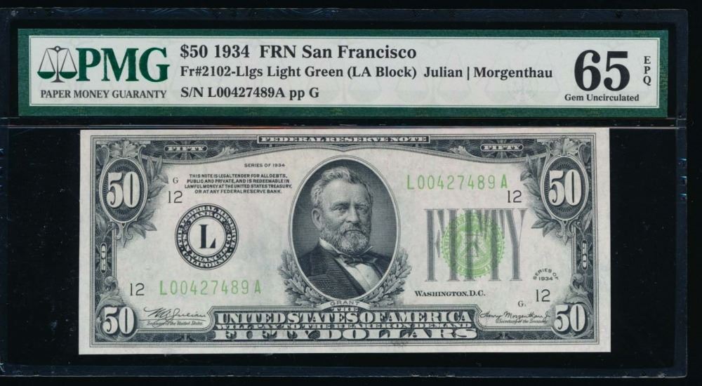 One 1934 $50 San Francisco Federal Reserve Note PMG 65EPQ.