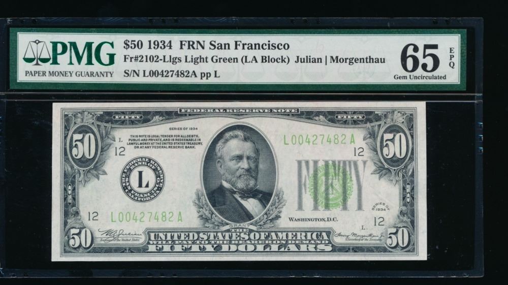 One 1934 $50 San Francisco Federal Reserve Note PMG 65EPQ.