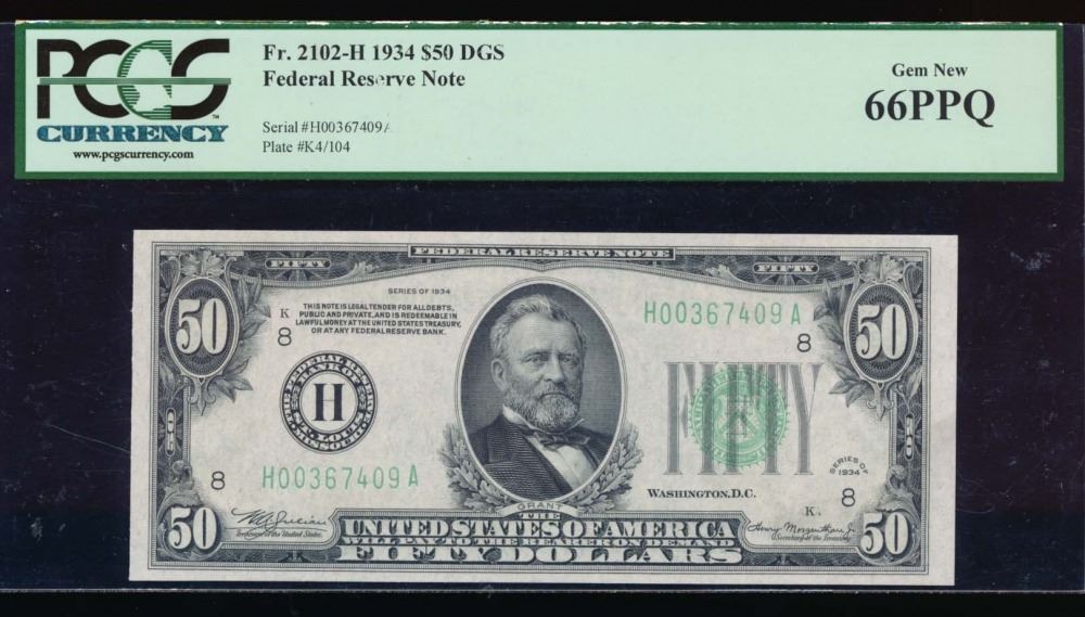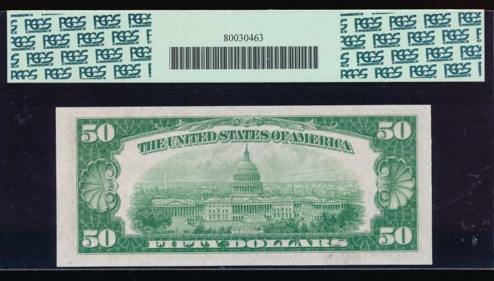 One 1934 $50 St Louis Federal Reserve Note PCGS 66PPQ.