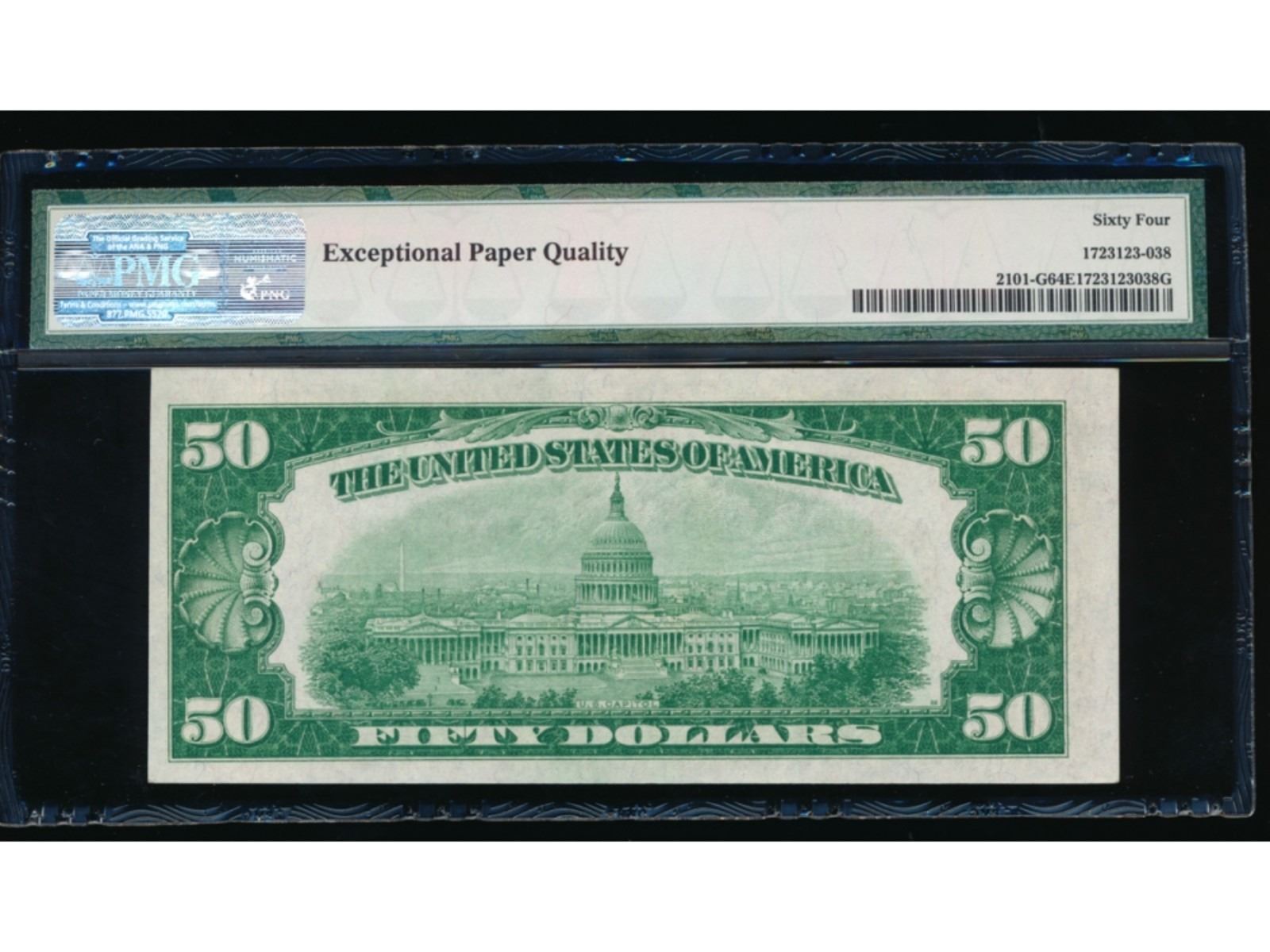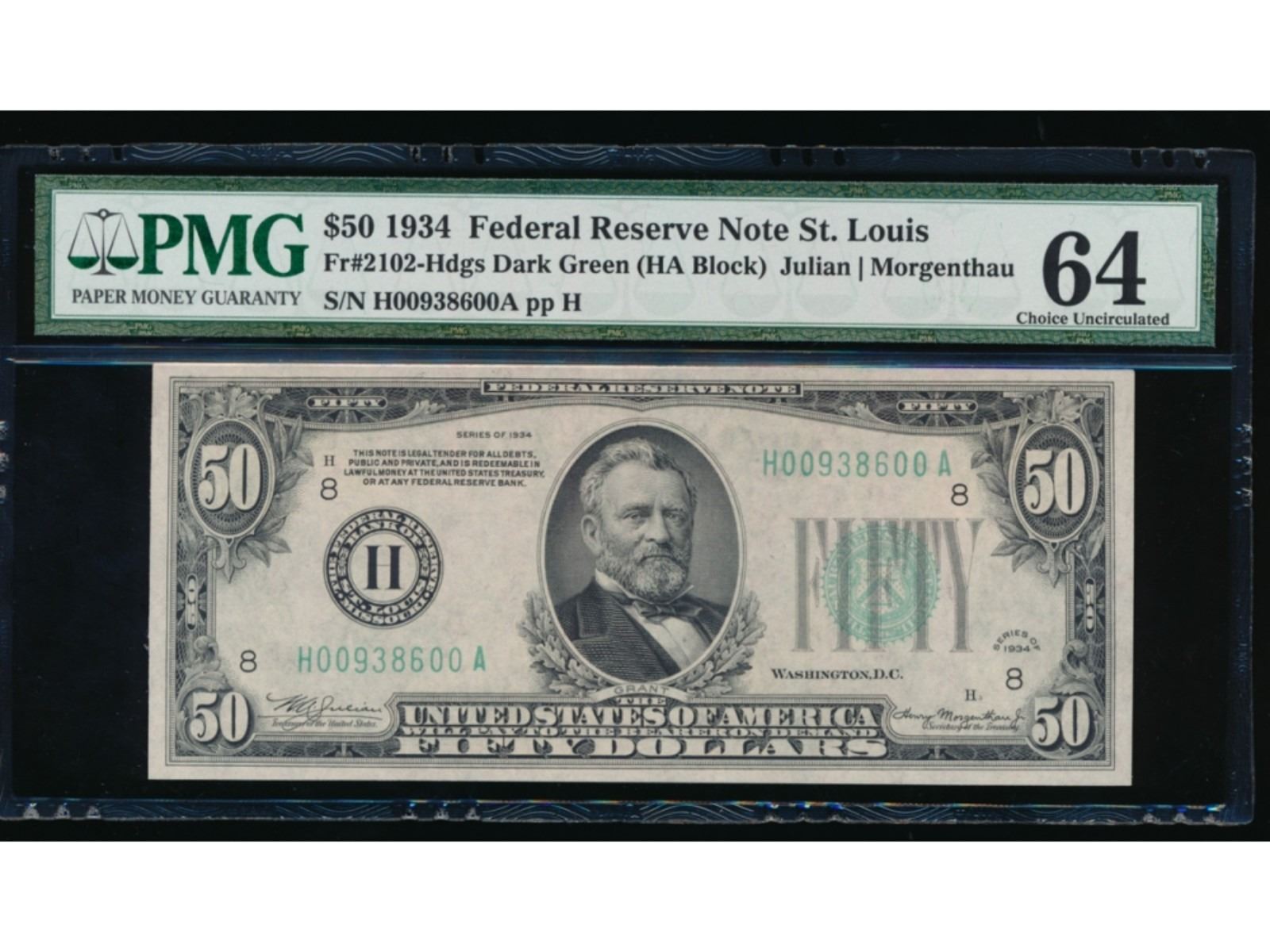 One 1934 $50 St Louis Federal Reserve Note PMG 64.