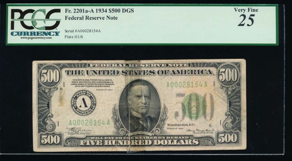 One 1934 $500 Boston Federal Reserve Note PCGS 25.