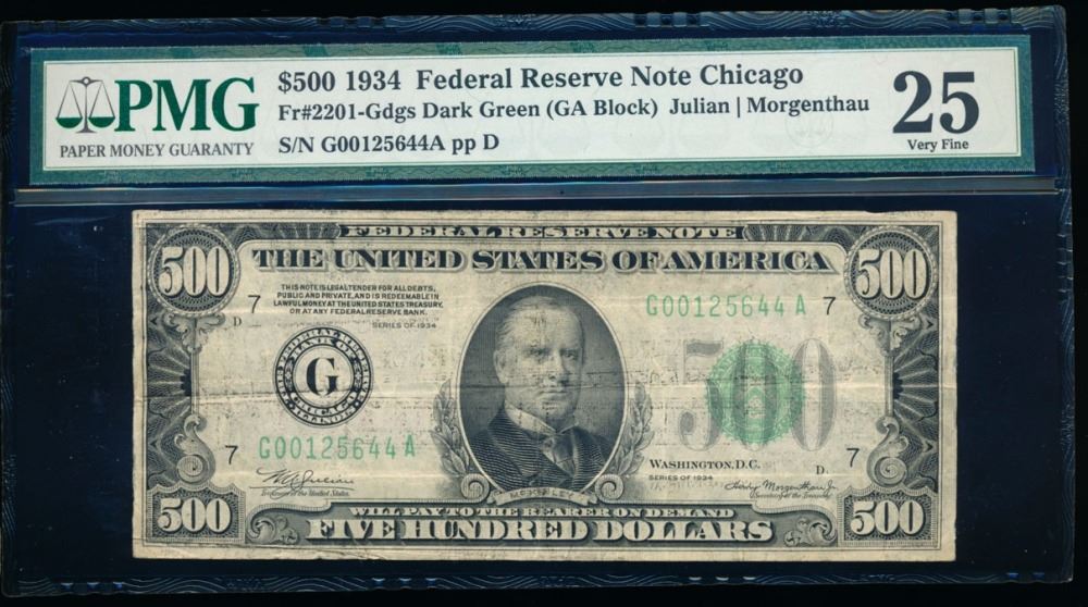 One 1934 $500 Chicago Federal Reserve Note PMG 25.