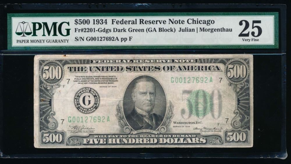 One 1934 $500 Chicago Federal Reserve Note PMG 25.