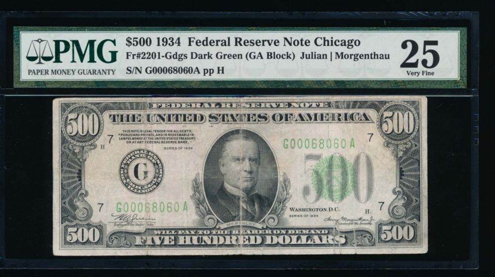 One 1934 $500 Chicago Federal Reserve Note PMG 25.