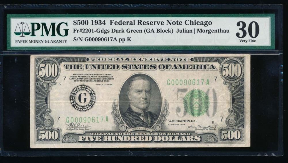 One 1934 $500 Chicago Federal Reserve Note PMG 30.