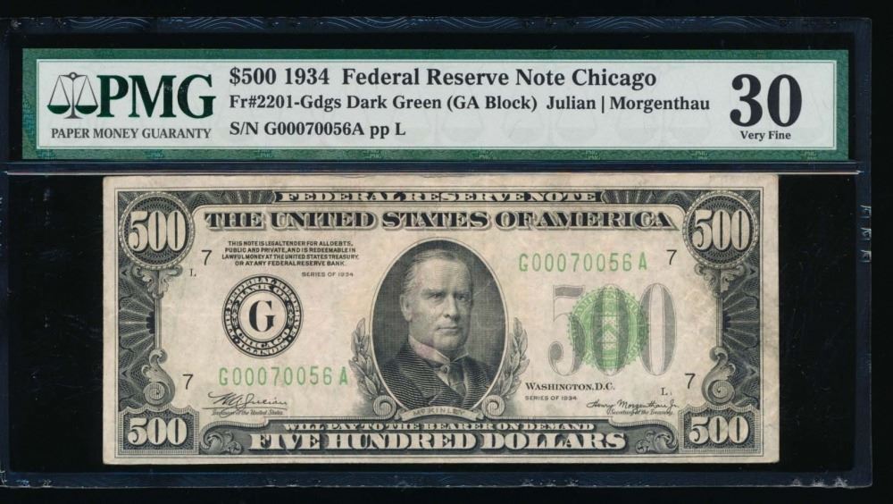 One 1934 $500 Chicago Federal Reserve Note PMG 30.