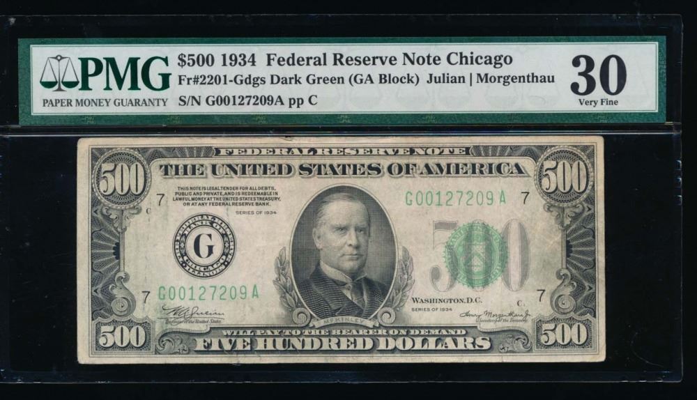 One 1934 $500 Chicago Federal Reserve Note PMG 30.