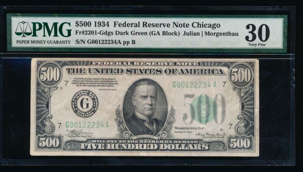 One 1934 $500 Chicago Federal Reserve Note PMG 30.