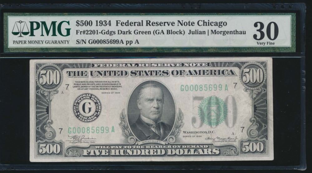 One 1934 $500 Chicago Federal Reserve Note PMG 30.