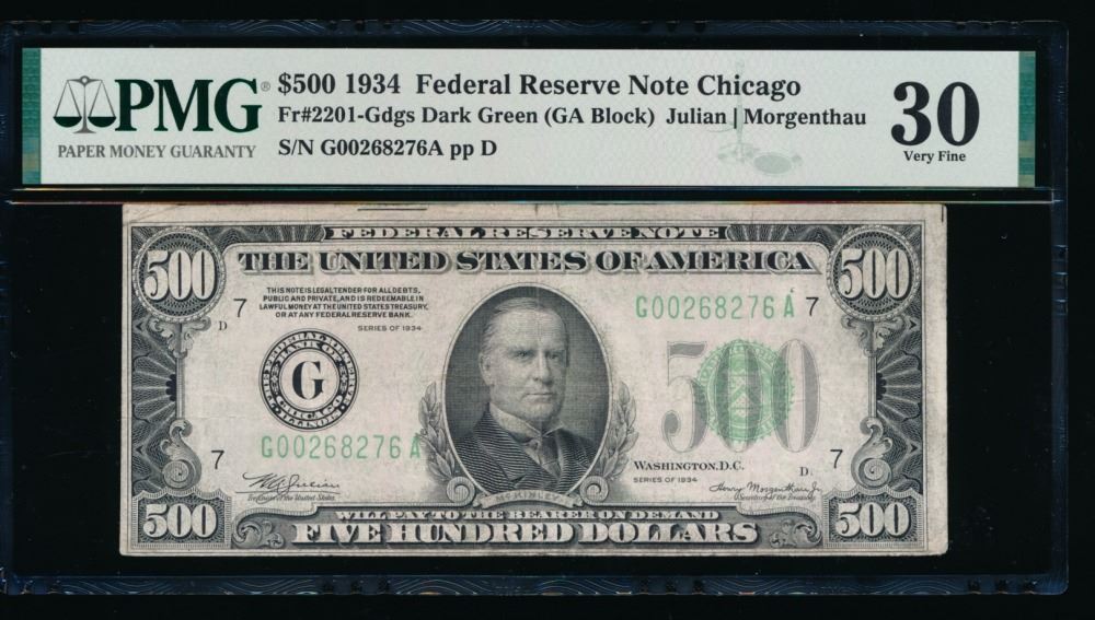 One 1934 $500 Chicago Federal Reserve Note PMG 30.