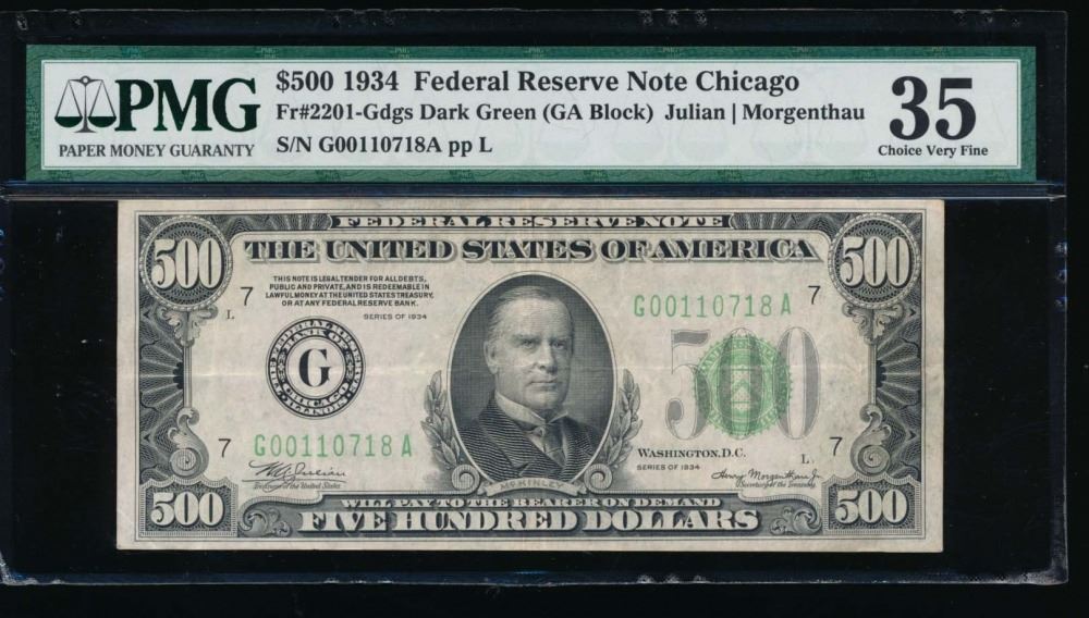 One 1934 $500 Chicago Federal Reserve Note PMG 35.