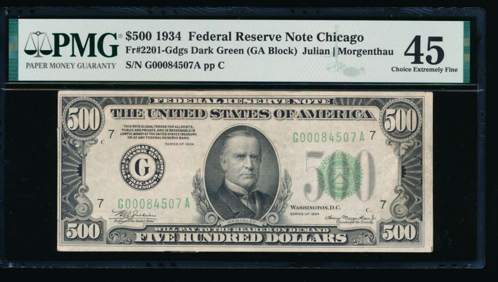 One 1934 $500 Chicago Federal Reserve Note PMG 45.