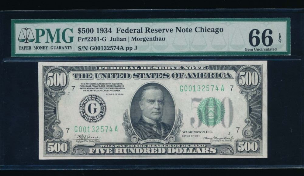 One 1934 $500 Chicago Federal Reserve Note PMG 66EPQ.