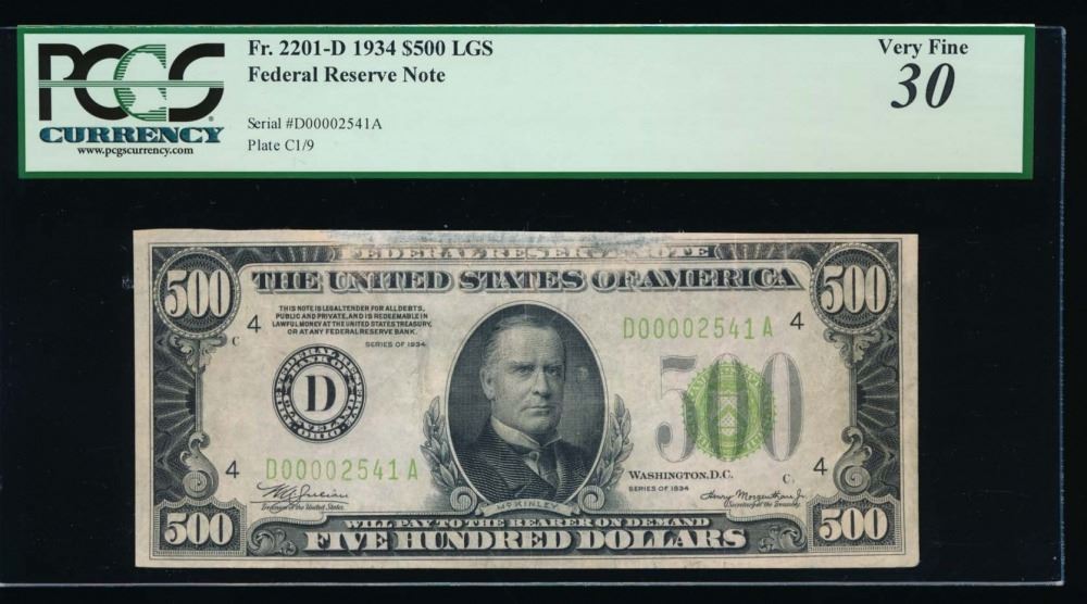 One 1934 $500 Cleveland Federal Reserve Note PCGS 30.