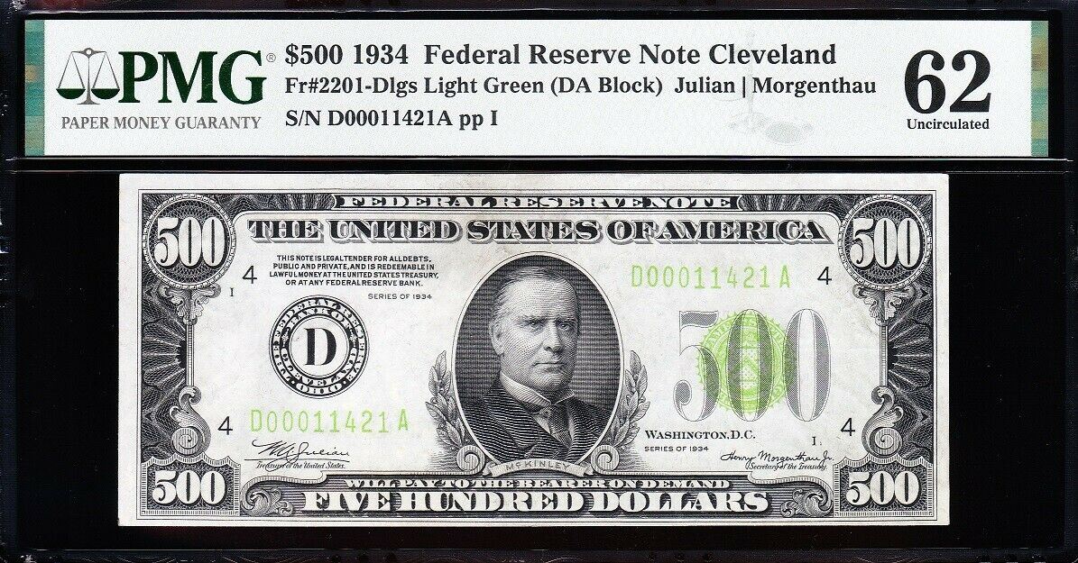 One 1934 $500 Cleveland Federal Reserve Note PMG 62.