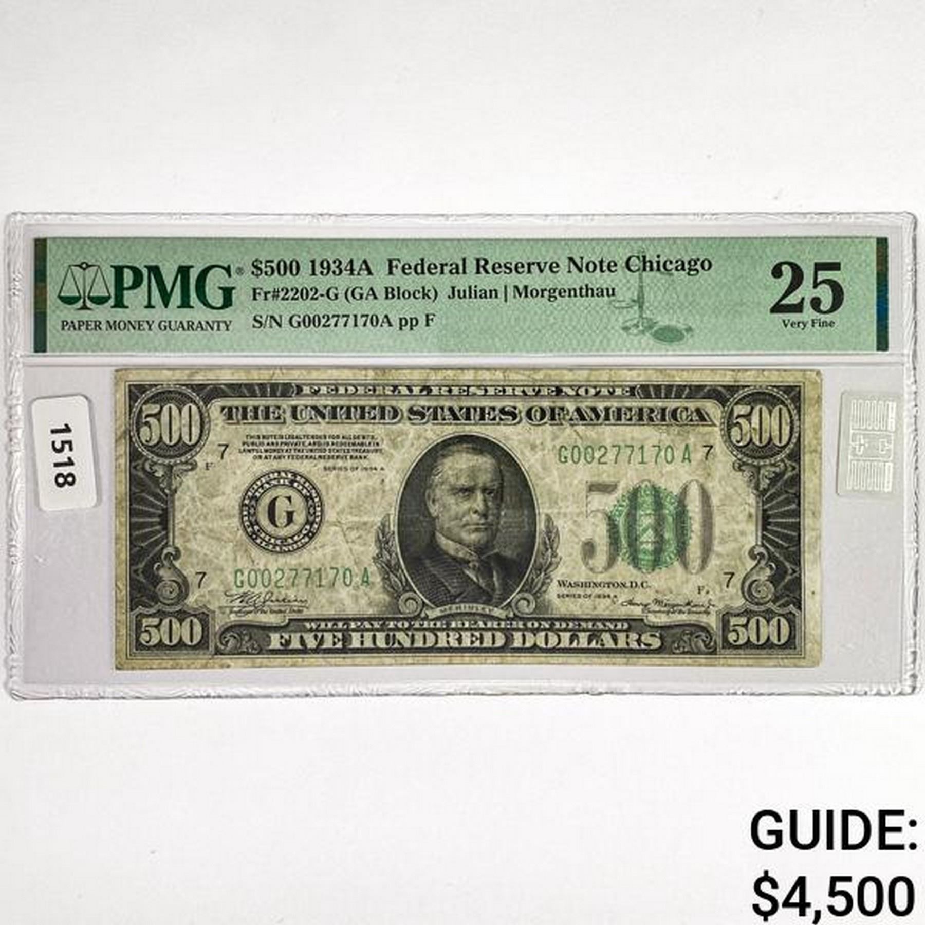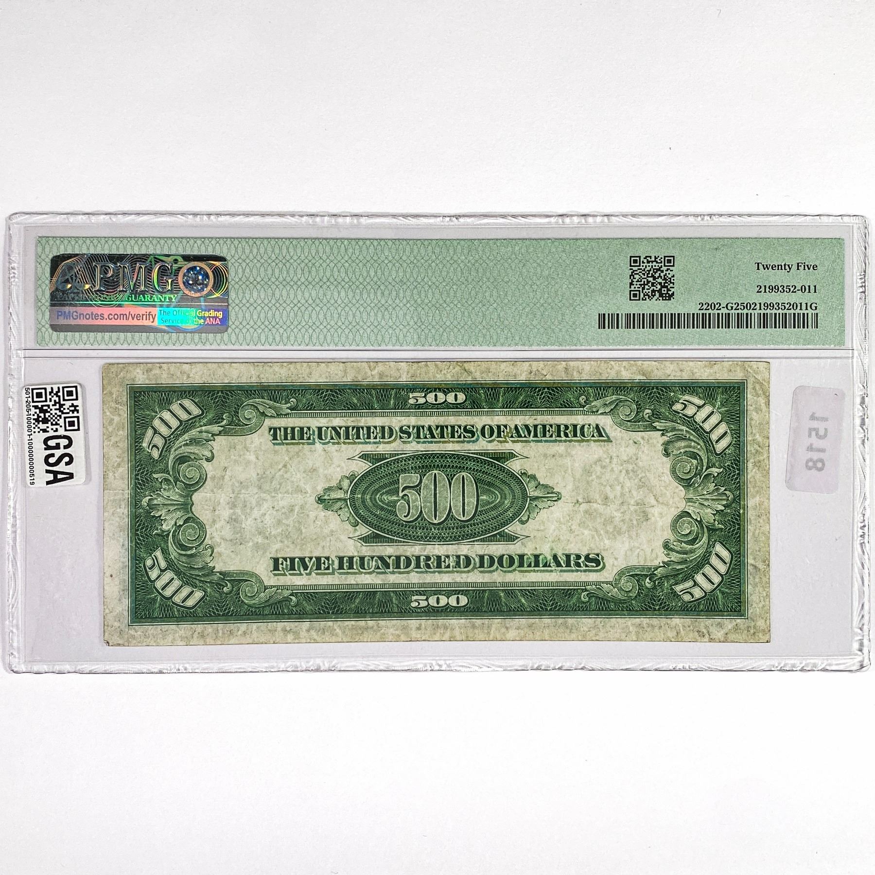 f. Notes sold referencing a third-party grading service are sold “AS IS” without any express or implied warranty, except for guarantee by GSA that they are genuine. Grading, condition or other attributes of any Product may have a material effect on its value and the opinion of others, including third-party grading services such as PCGS Currency and PMG may differ with that of GSA. GSA shall not be bound by any prior or subsequent opinion, determination, or certification by any grading service. Bidders specifically waive any claim to right of return of any Product because of the opinion, determination, or certification, or lack thereof, by any grading service. Certain warranties may be available from the grading services and Bidders are referred to them for further details: Paper Money Guaranty (PMG), PO Box 4711, Sarasota, FL 34230; PCGS Currency, PO Box 10470, Peoria, IL 61612-0470; PCGS Gold Shield, PO Box 9458, Newport Beach, CA 92658. Third-party graded notes are not returnable for any reason whatsoever.