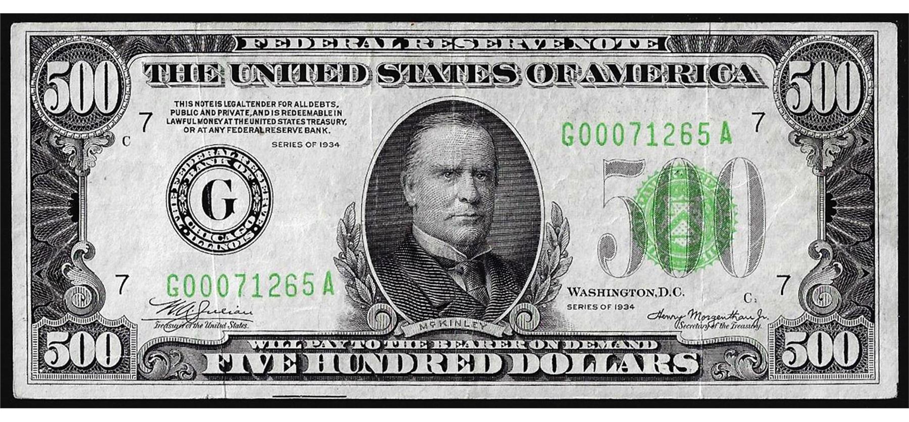 One 1934 $500 Federal Reserve Note Chicago.