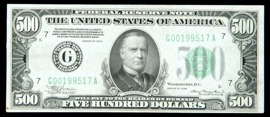 1934, $500 Federal Reserve Note. Chicago. . Fr-2201-G. Fine to Very Fine.