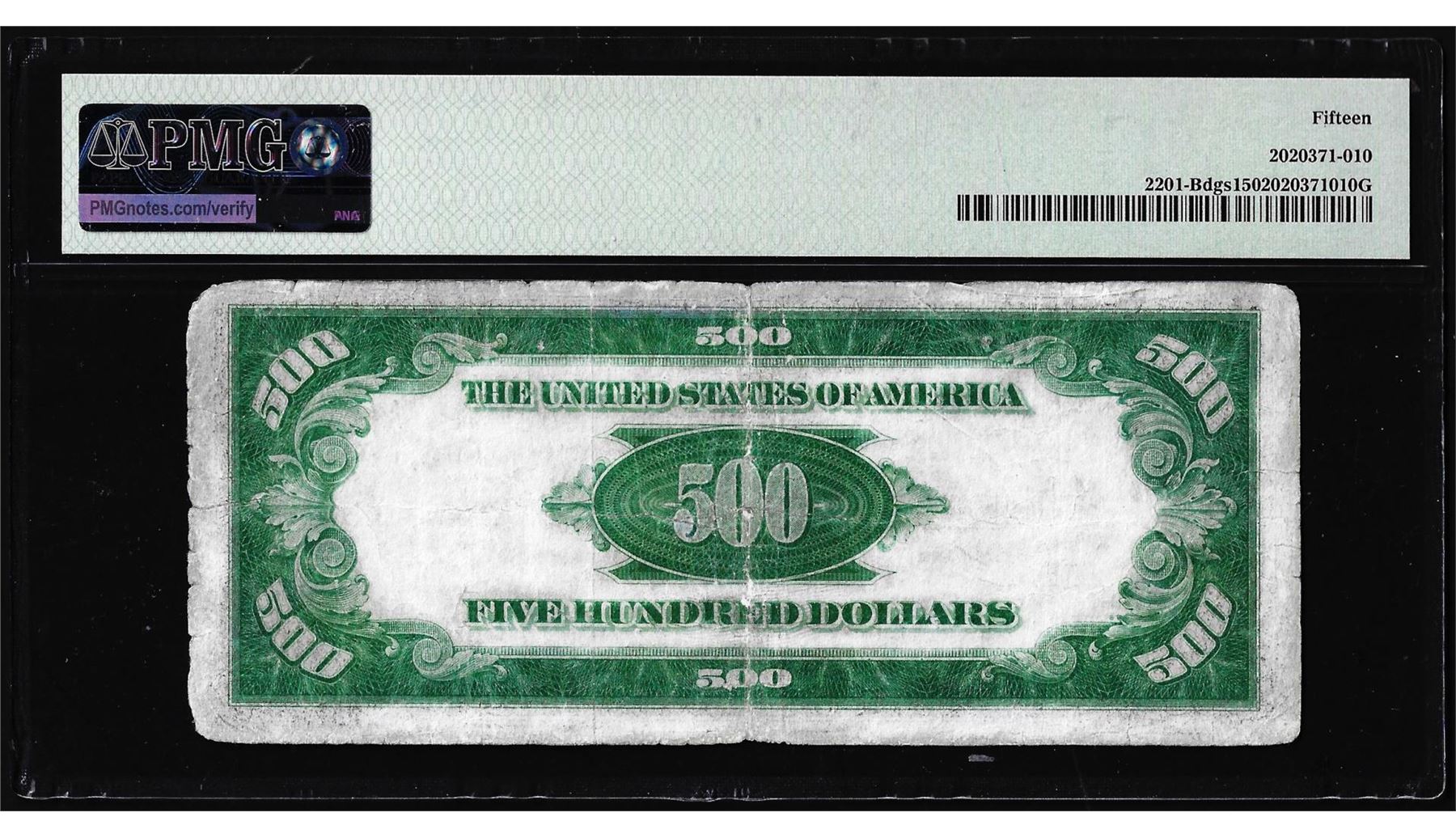 One 1934 $500 Federal Reserve Note New York Fr.2201-B PMG Choice Fine 15. PMG Certified.