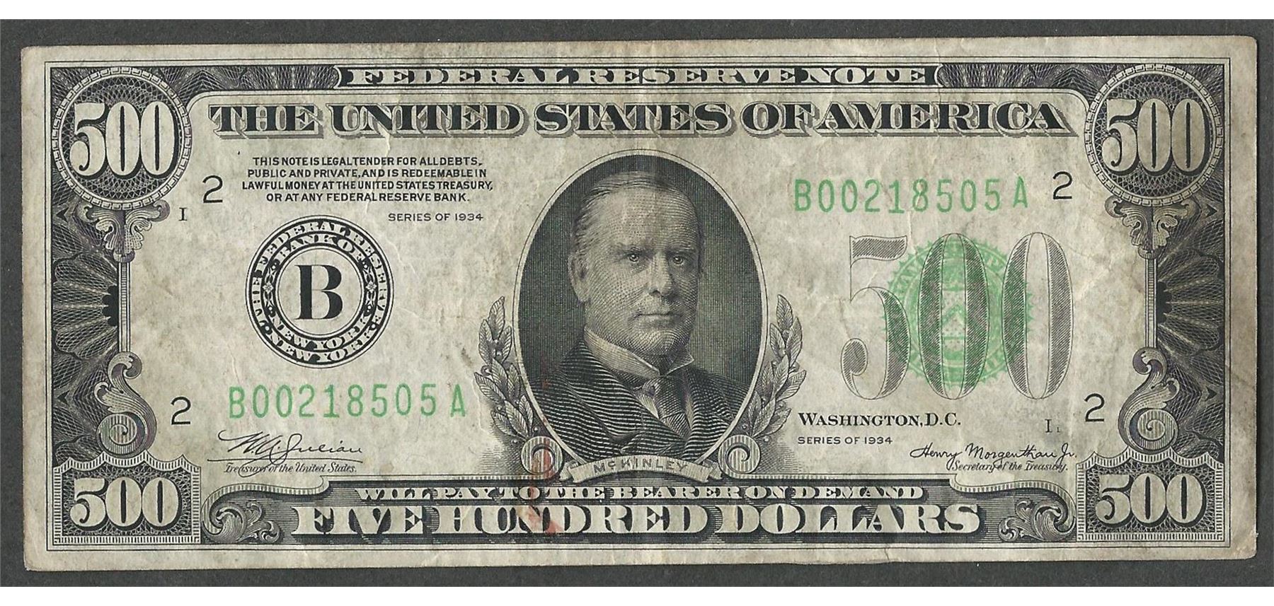 One 1934 $500 Federal Reserve Note New York
