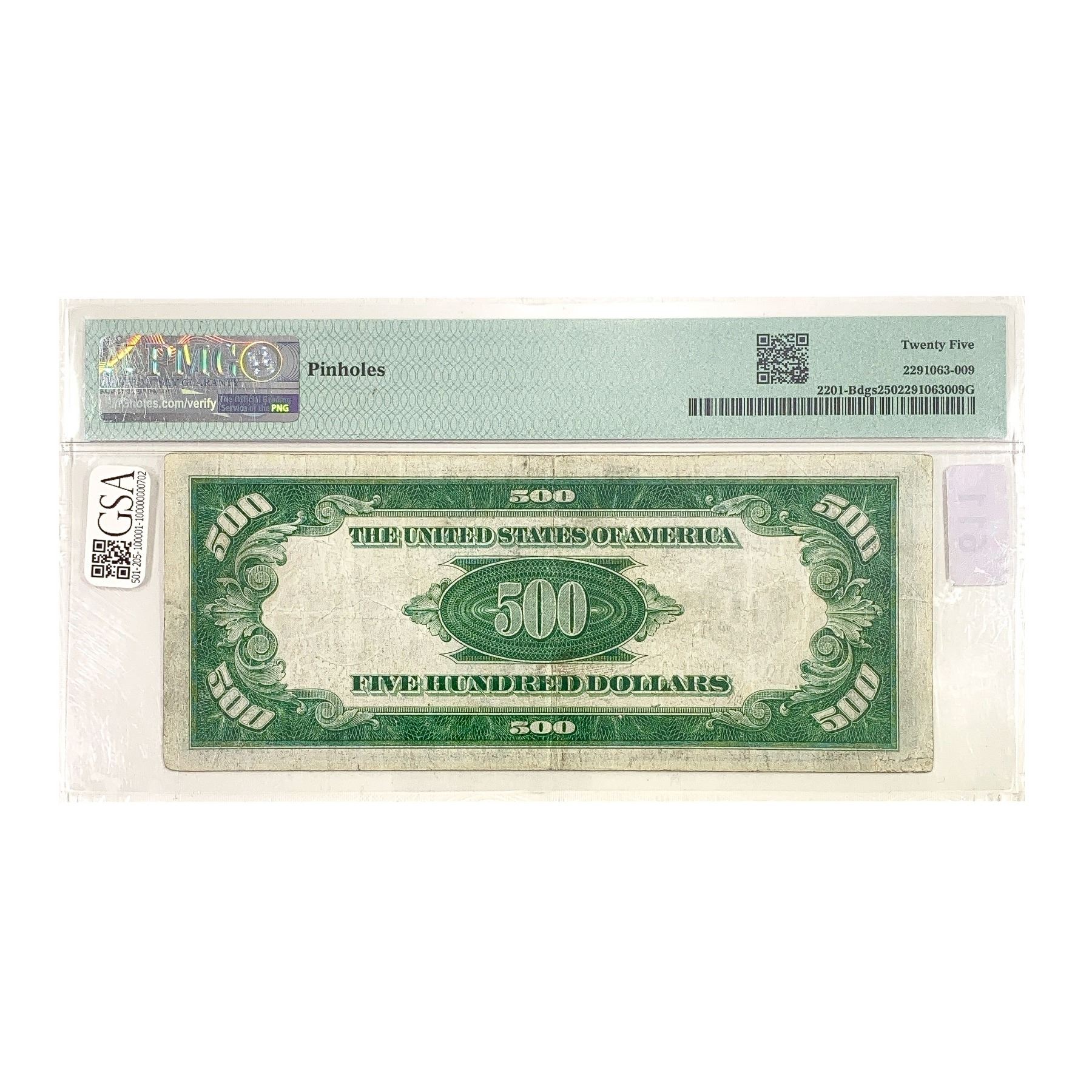 f. Notes sold referencing a third-party grading service are sold “AS IS” without any express or implied warranty, except for guarantee by GSA that they are genuine. Grading, condition or other attributes of any Product may have a material effect on its value and the opinion of others, including third-party grading services such as PCGS Currency and PMG may differ with that of GSA. GSA shall not be bound by any prior or subsequent opinion, determination, or certification by any grading service. Bidders specifically waive any claim to right of return of any Product because of the opinion, determination, or certification, or lack thereof, by any grading service. Certain warranties may be available from the grading services and Bidders are referred to them for further details: Paper Money Guaranty (PMG), PO Box 4711, Sarasota, FL 34230; PCGS Currency, PO Box 10470, Peoria, IL 61612-0470; PCGS Gold Shield, PO Box 9458, Newport Beach, CA 92658. Third-party graded notes are not returnable for any reason whatsoever.