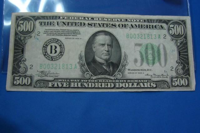 1934 $500 Federal Reserve Note Ver Fine Condition