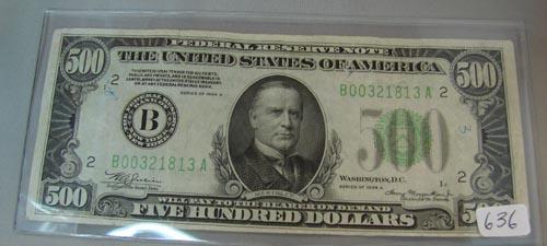 1934 $500 Federal Reserve Note Ver Fine Condtion
