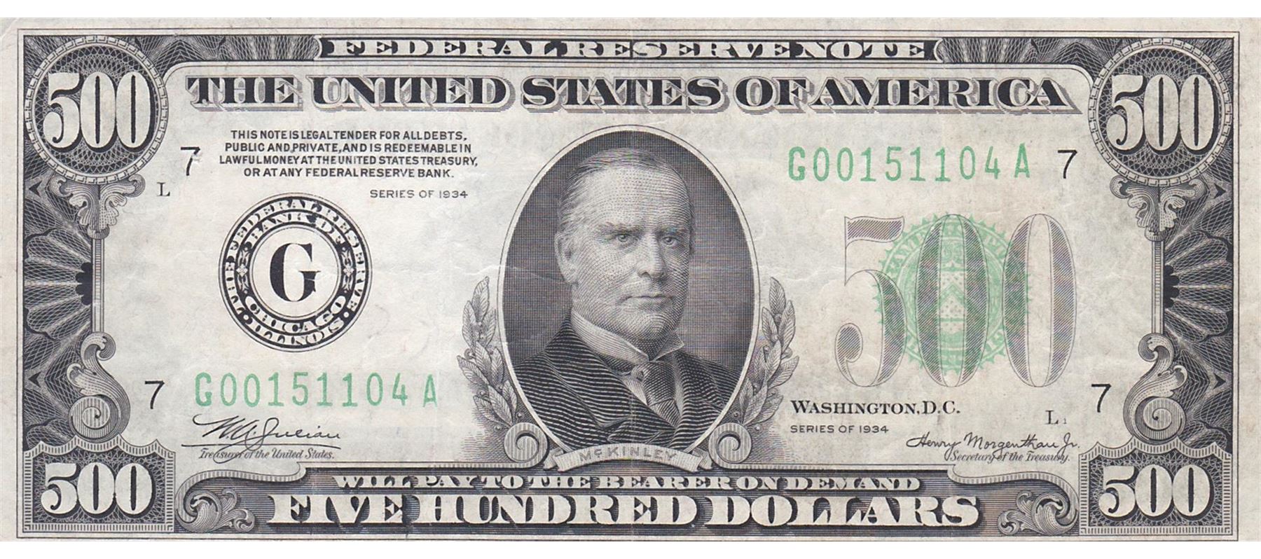 One 1934 $500 Federal Reserve Note.