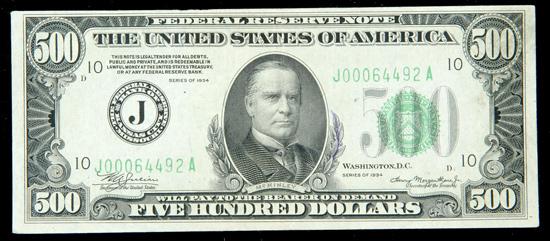 1934, $500 Federal Reserve Note