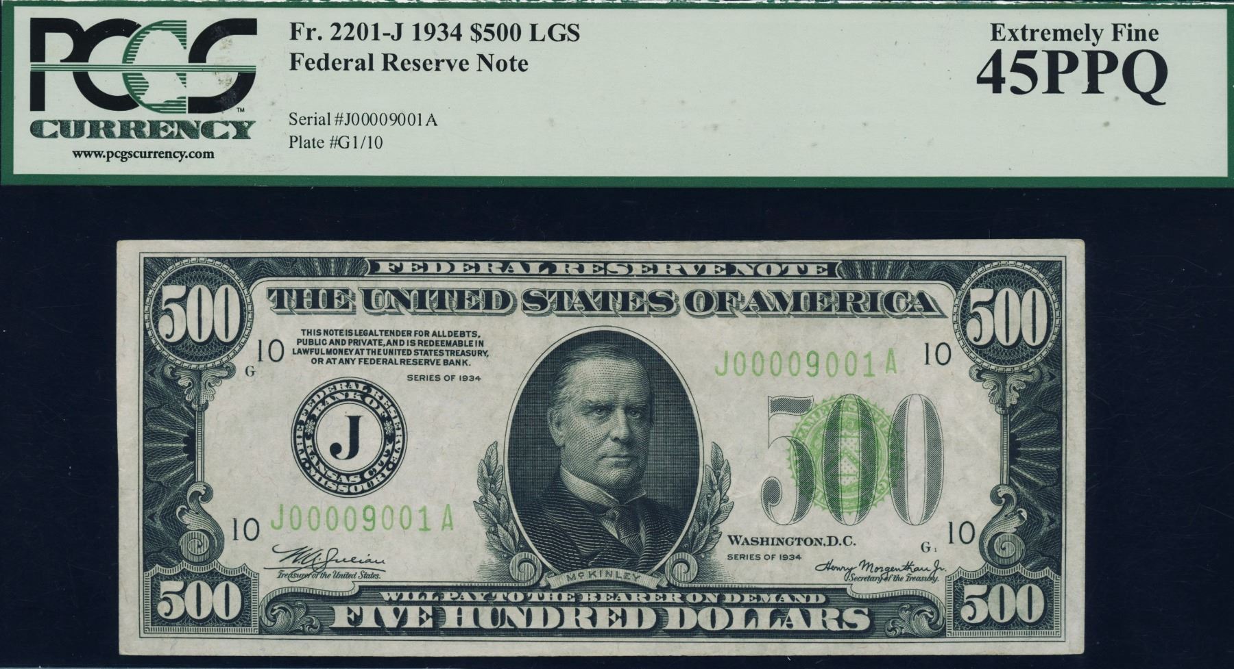 One 1934 $500 Kansas City Federal Reserve Note PCGS 45PPQ.