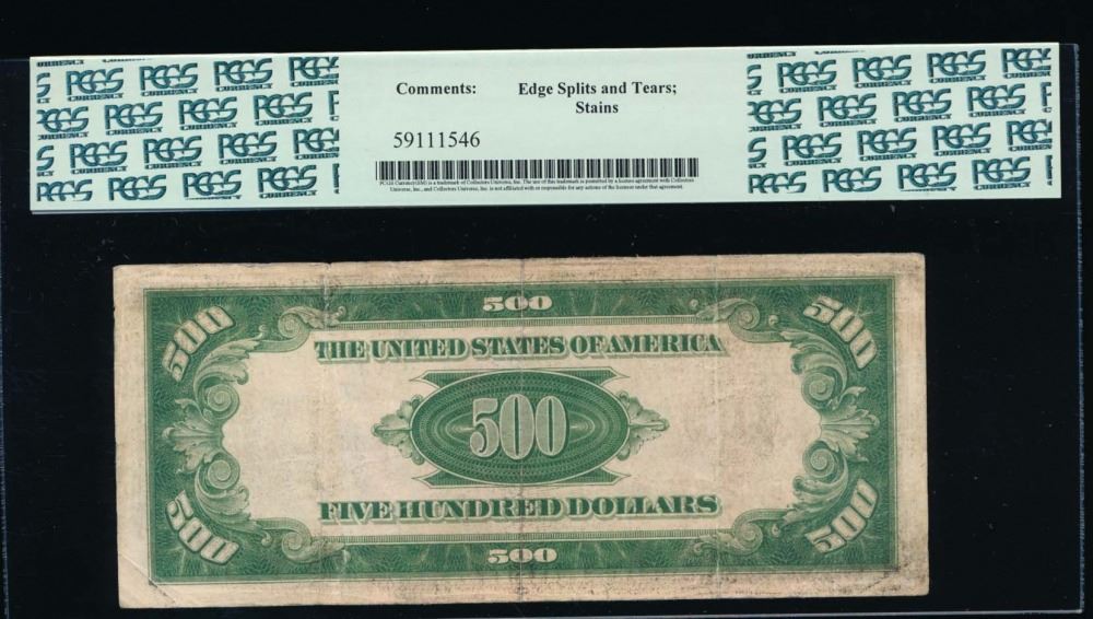 One 1934 $500 New York Federal Reserve Note PCGS 20.