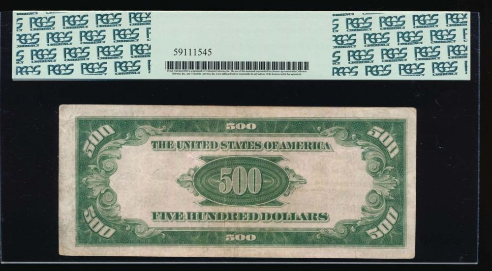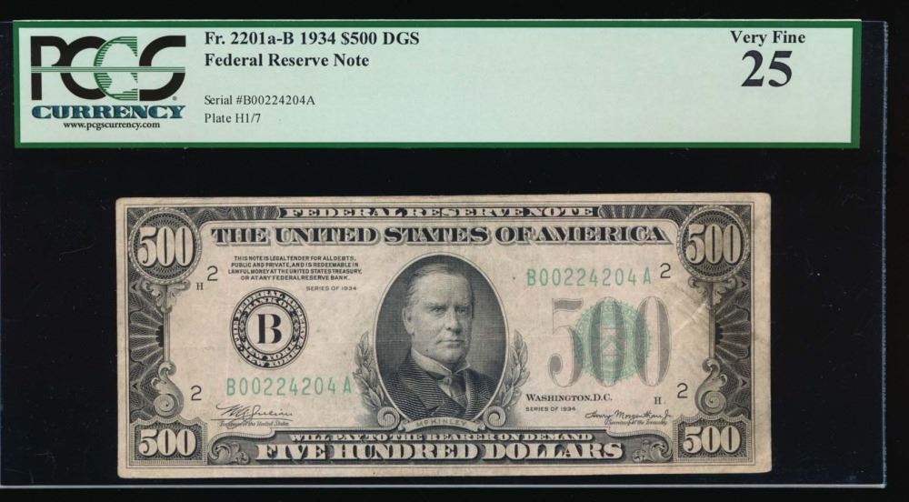 One 1934 $500 New York Federal Reserve Note PCGS 25.