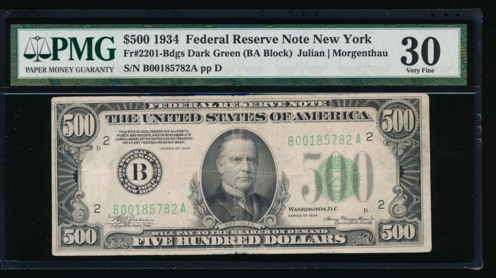 One 1934 $500 New York Federal Reserve Note PMG 30.