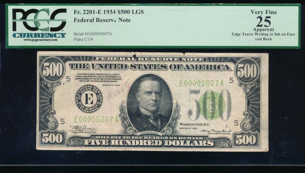 One 1934 $500 Richmond Federal Reserve Note PCGS 25.