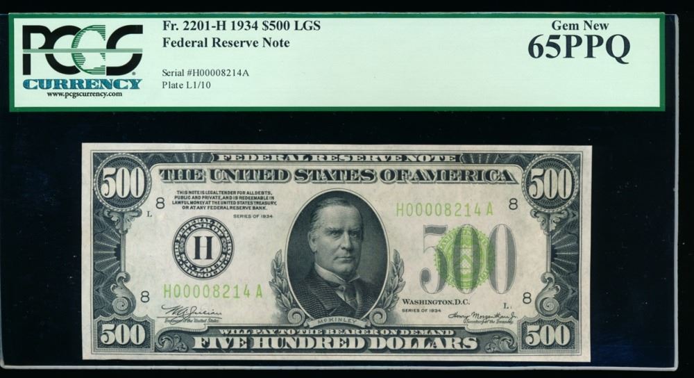 One 1934 $500 Saint Louis Federal Reserve Note PCGS 65PPQ.