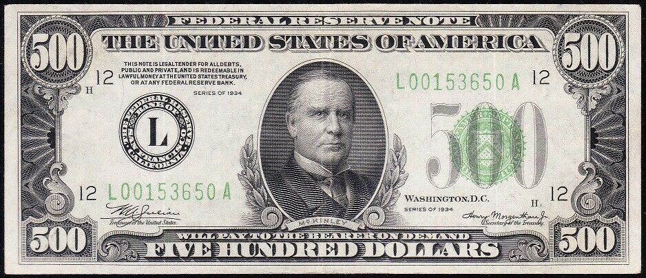 One 1934 $500 San Francisco Federal Reserve Note.