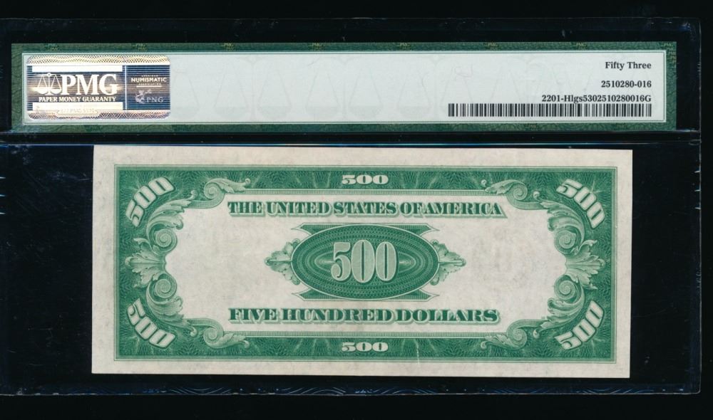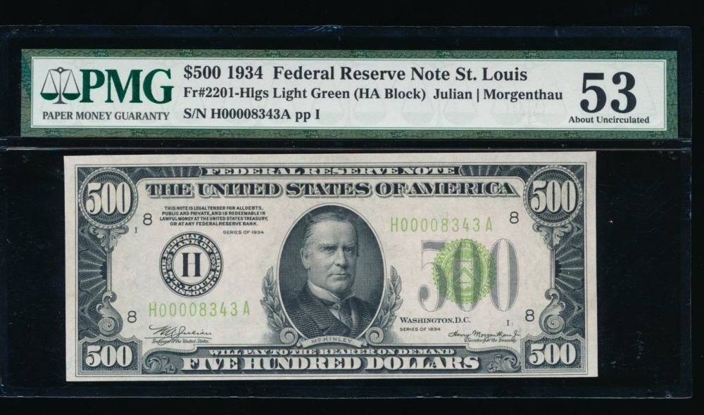 One 1934 $500 St Louis Federal Reserve Note PMG 53.