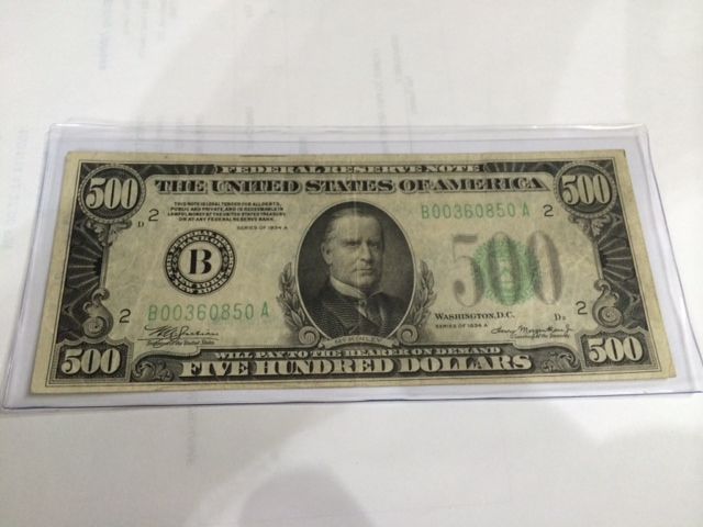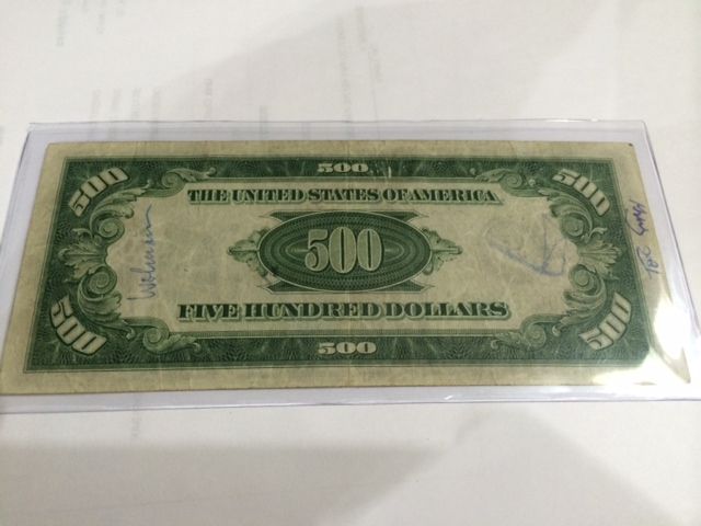 1934 $500 US FEDERAL RESERVE NOTE. Some writing on reverse
