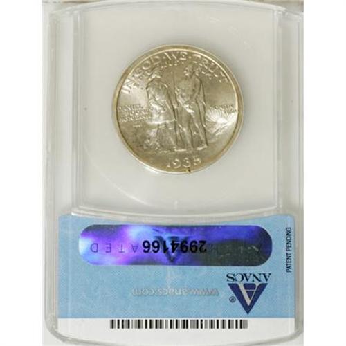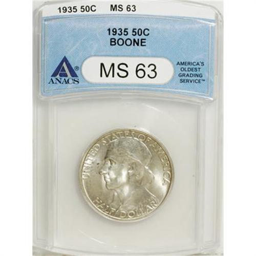 <B>1934 50C Boone --Laminations--MS64 ANACS </B></I>and a <B>1935 Boone MS63 ANACS.</B></I><BR><I>From The Frank DuVall Collection of U.S. Commemoratives.</B></I><BR><BR><b>Shipping:</b> Coins & Currency (<a target="_blank" href="http://www.heritageauctions.com/common/shipping.php">view shipping information</a>\)