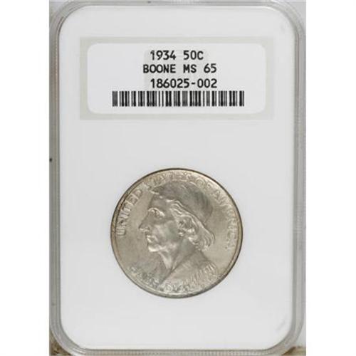 <B>1934 50C Boone MS65 NGC.</B></I> NGC Census: (395/172). PCGS Population (520/208). Mintage: 10,007. Numismedia Wsl. Price for NGC/PCGS coin in MS65: $220. (#9257)<BR><BR><b>Shipping:</b> Coins & Currency (<a target="_blank" href="http://www.heritageauctions.com/common/shipping.php">view shipping information</a>)